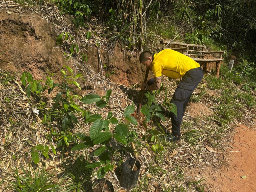 วันนี้(17 พ.ค. 66) เวลา 09.00 น. ชุดจิตอาสา นำโดย ร.ต.ท.สุรินทร์ ฤทธิศักดิ์ ชุดปฏิบัติการชุมชนยั่งยืน นักเรียนนายสิบตำรวจฝึกปฏิบัติราชการ นายกองค์การบริหารส่วนตำบลนาหอ ผู้ใหญ่บ้านบุ่งกุ่ม คณะกรรมการประจำหมู่บ้าน และผู้เข้าร่วมโครงการชุมชนยั่งยืน ร่วมกิจกรรมพัฒนา และปลูกป่าชุมชนบริเวณโป่งฟาน เพื่อส่งเสริมการท่องเที่ยวของหมู่บ้าน และจัดกิจกรรมให้ผู้เข้าร่วมโครงการชุมชนยั่งยืน