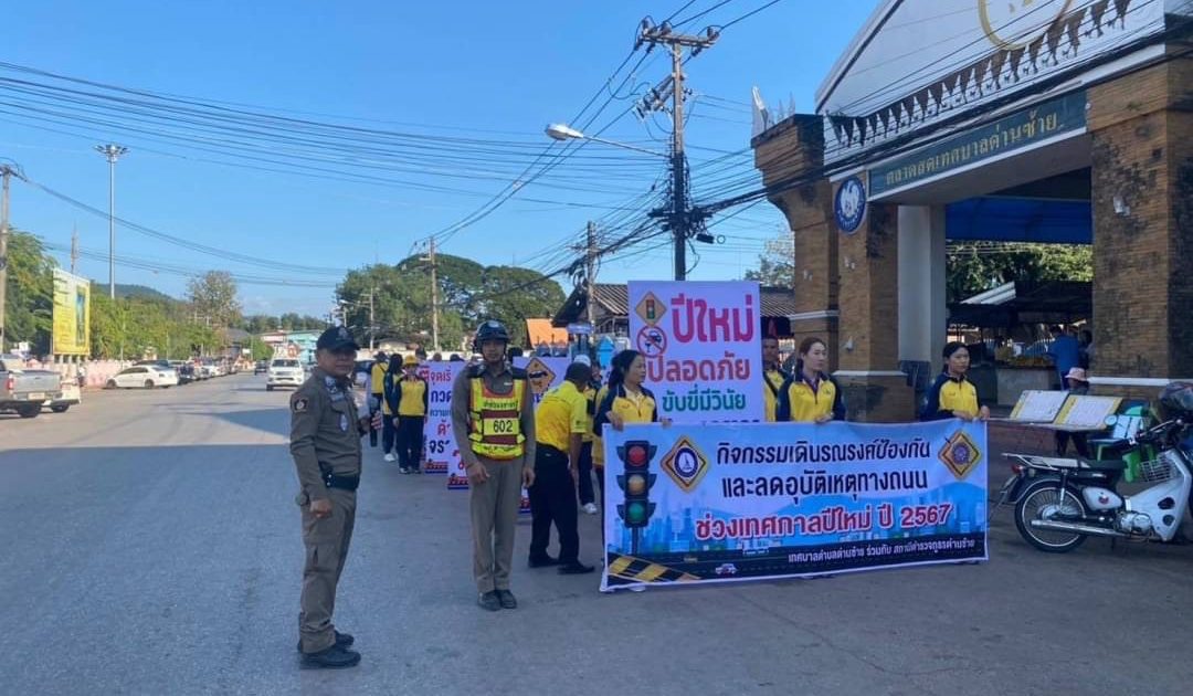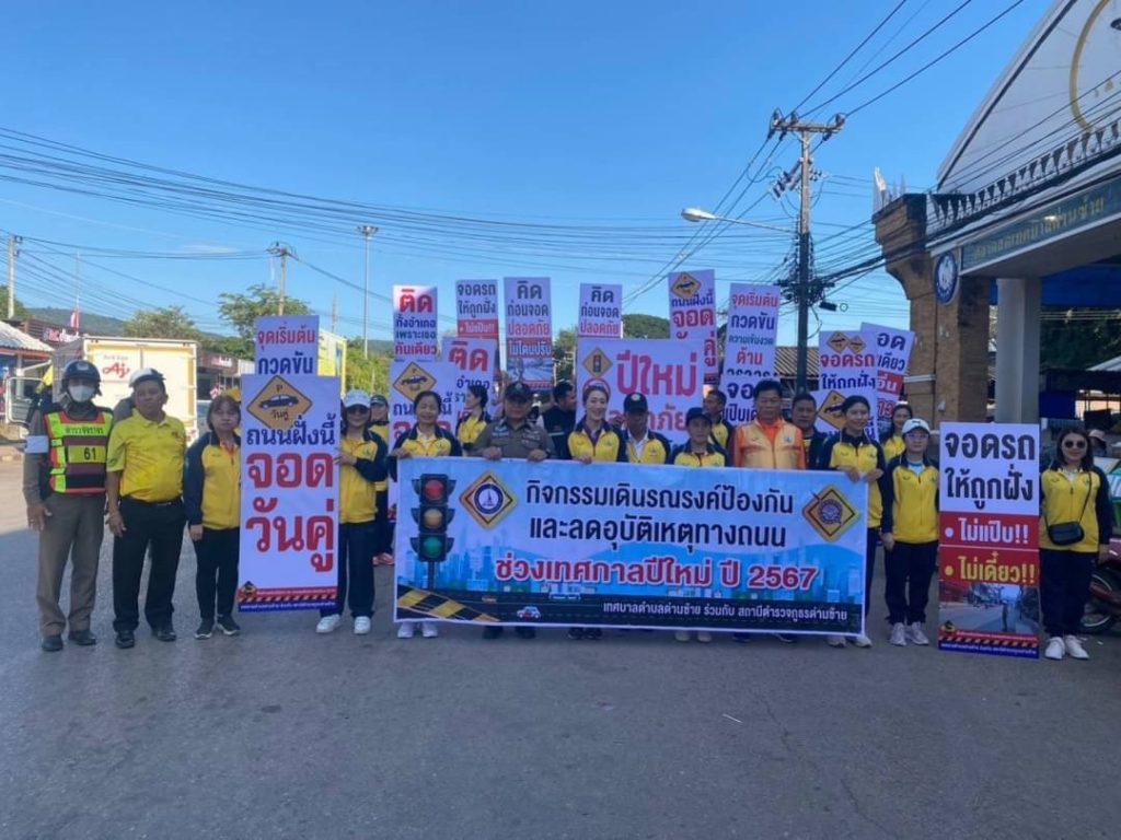 วันที่ 20 ธันวาคม 2567 เวลา 09.00 น พ.ต.อ.ณธีพัฒน์ จิรัฐวรโชติ ผกก.สภ.ด่านซ้าย พร้อม พ.ต.ต.สมยุทธ ศรีอรรคพรหม สวป.(ชส.) สภ.ด่านซ้าย พร้อมชุดจราจร ร่วมกิจกรรมกับกต.ตร.สภ.ด่านซ้าย และเทศบาลตำบลด่านซ้าย ร่วมกันจัดกิจกรรมเดินรณรงค์ป้องกันและลดอุบัติเหตุบนทางถนนช่วงเทศกาลปีใหม่ 2568