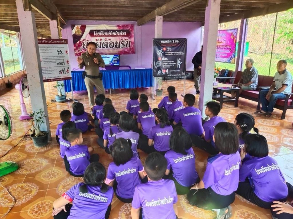 วันที่ 6 กุมภาพันธ์ 2568 เวลา.13.50 น พ.ต.ต. สมยุทธ ศรีอรรคพรหม สวป.(ชส) พร้อมทีมงานครูแดร์และคณะกรรมการ กต.ตร.สภ.ด่านซ้าย ได้ร่วมกิจกรรมให้ความรู้และซักซ้อมแผนเผชิญเหตุบุคลคลุ้มคลั่งเมายาบ้าเข้ามาอาละวาทในโรงเรียน หนี ซ่อน สู้. ไซเบอร์ วัคซีน. บุหรี่ไฟฟ้า ณ.โรงเรียนบ้านป่าม่วง ต.อิปุ่ม อ.ด่านซ้าย จ.เลย