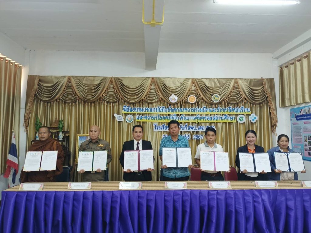 พ.ต.อ.ณธีพัฒน์ จิรัฐวรโชติ ผกก.สภ.ด่านซ้าย ได้ร่วมลงนามในบันทึกข้อตกลงความร่วมมือ ด้านการคุ้มครองและช่วยเหลือนักเรียนและความปลอดภัยในสถานศึกษากลุ่มโรงเรียนอิปุ่ม ณ ห้องประชุมโรงเรียนบ้านทับกี่
