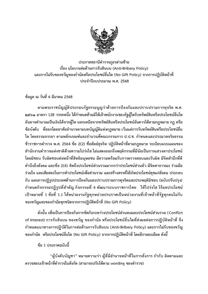 ณ วันที่ 6 มีนาคม 2568 (March 6 2025)