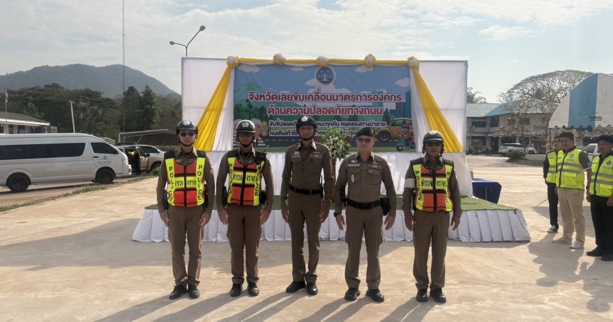 ณ บริเวณหน้าที่ว่าการอำเภอด่านซ้าย โครงการจังหวัดเลยขับเคลื่อนมาตรการองค์กรด้านความปลอดภัยทางถนน ขับขี่ปลอดภัยยานพาหนะทุกคันหยุดตรงทางม้าลาย และคนเดินเท้าใช้ทางม้าลายและข้ามทางทุกครั้ง