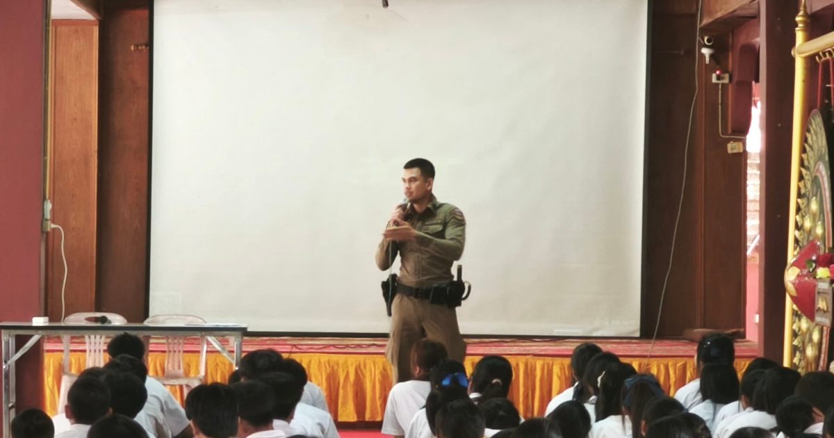 ให้ความรู้ เกี่ยวกับยาเสพติด บุหรี่ไฟฟ้า และกฎหมายจราจรเบื้องต้น แก่นักเรียน โรงเรียนศรีสองรักษ์วิทยา
