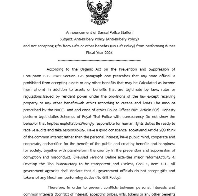 Anti-Bribery Policy (Anti-Bribery Policy)and not accepting gifts from Gifts or other benefits (No Gift Policy) from performing duties Fiscal Year 2026